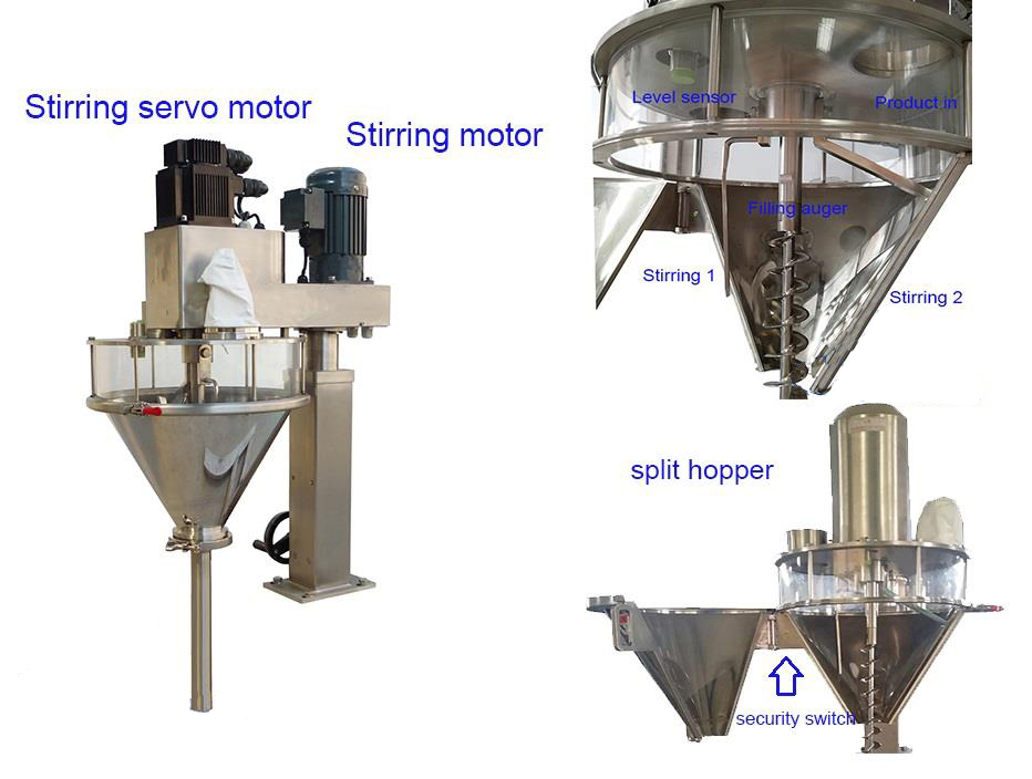 Sekoittimen täyttö servomoottorilla, joka on suunniteltu annosteltavaksi jauhevalmisteiksi, sopii monenlaisiin irrallisiin jauhemaisiin tuotteisiin, kuten jauhoihin, jauhemaitoon, kaakaoihin, jäätymisoseihin, vauvanruokiin, maapähkinöihin, hienoksi jauhettuihin kahviin, kemiallisiin tuotteisiin jne.
