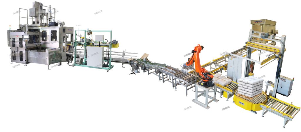 10-25 kg pakkaus, kapasiteetti 1000 pussia / h (erilaisen pussin, raaka-aineen mukaan)