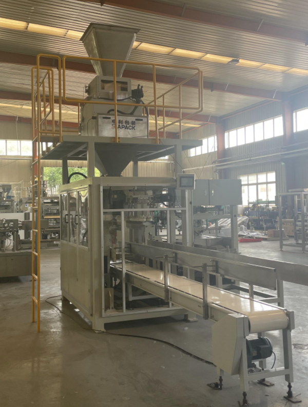 Tämä pakkauskone on kehitetty raemateriaalien, kuten kemikaalien, rehujen, viljan ja siementen pakkaamiseen. Laitteessa on automaattinen pussien nouto, automaattinen täyttö, automaattinen pussien kuljetus ja sulkeminen. Se voidaan yhdistää kaikenlaisiin pakkauksiin. raemateriaalin tuotantolaitteiden työskentelyyn suuren kokoisen pakkaustoiminnan valvomattoman tuotannon saavuttamiseksi.LCD-kosketusnäytön ohjaus .Ihmisen ja tietokoneen välinen käyttöliittymä edullisempi .Automaattinen vianmääritys .Turvallinen sammutussuoja. Nopea säätö ja helppo huolto.