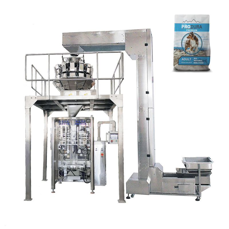 Tämä tuotantolinja sisältää yhden sarjan ZL14-1.6L monen pään punnituskoneen. Yksi sarja ZL520 pystysuoran pussin muodostavan täyttötiivisteen, yhden sarjan Z-tyypin kauhahissin ja yhden sarjan tasoa ja tikkaat. Koko kone voi automaattisesti mitata pienirakeisen tuotteen ja pakkaamisen rullakalvopussiin. Käytetään laajasti riisipapu-sokerilastujen ja niin edelleen pakkaamiseen. Koko kone on valmistanut ruostumaton teräs 304, tämä kone on varustettu pussien valmistamisella, leikkaamisella, kooditulostuksella, jne. Siemens PLC ja kosketusnäyttö, Panasonicin servomoottori, japanilainen valokuvaanturi, korealainen ilmaventtiili jne.
