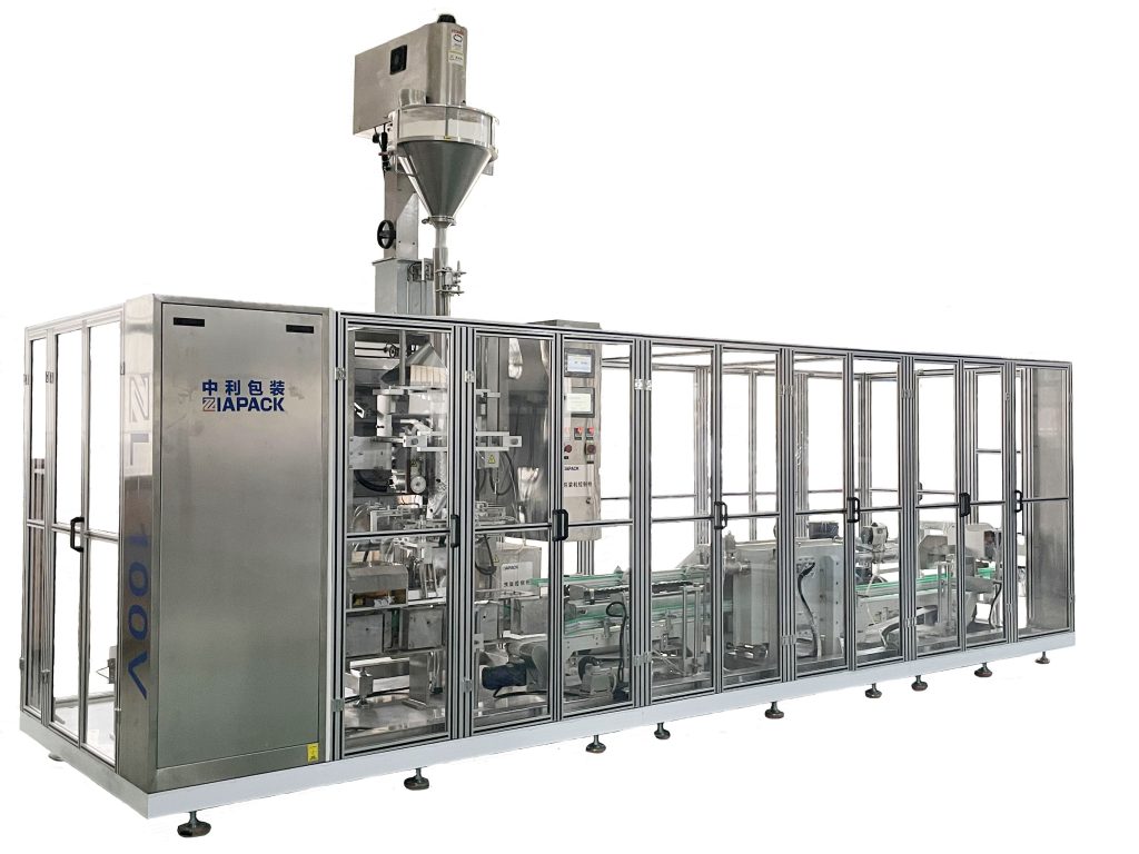 Tämä kone sisältää yhden sarjan ZL520 pystysuoran pussin pakkaus- ja sulkemiskoneen. yksi sarja ZL2000 kairamittauskone, yksi ZL100V tyhjiökammiopakkauskone ja yksi ulostulokuljetin. Tätä konetta käytetään laajalti elintarvike-apteekkien kemikaalien ja muiden tuotteiden pakkaamiseen. jauhe tai pieni rake. Kuten kahvijauhe, hiivajauhe vehnäjauho ja niin edelleen. Koko kone pumppaa sisällään tyhjiötuotteen. Tyhjiöaste on erittäin korkea ja pakkausnopeus on erittäin korkea, voi olla jopa 8 pussia/min. Valmis tuote on erittäin mukava ja siinä on pitkä säilyvyysaika.