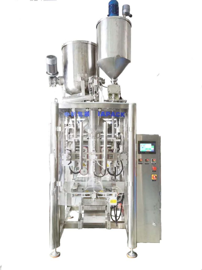 Tämä yksikkö on kehitetty nestemäisten ja viskoosien tuotteiden tarpeisiin. Yksikkö koostuu saumauskoneesta ja pakkauskoneesta; pakkauskoneella on yksinkertainen rakenne ja helppokäyttöinen; kone yhdistää pussien valmistus-, täyttö-, sulkemis- ja laskentatoiminnot. Se käyttää servomoottoria kalvon vetämiseen ja siinä on automaattinen poikkeaman korjaustoiminto.