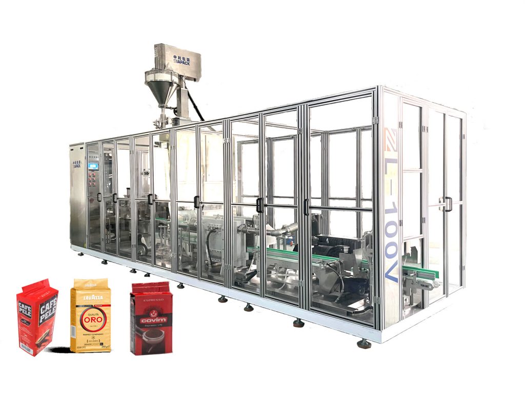 Tämä kone sisältää yhden sarjan ZL520 pystysuoran pussin pakkaus- ja sulkemiskoneen. yksi sarja ZL2000 kaksoisämpärivaaka, yksi ZL-100V tyhjiöpakkauskone ja yksi ulostulokuljetin. Tätä konetta käytetään laajasti elintarvike-apteekkien kemikaalien ja muiden tuotteiden pakkaamiseen. jauheena tai pieninä rakeina. Kuten kahvijauhe, hiivajauhe ja niin edelleen. Koko kone pumppaa sisällään tyhjiötuotteen. Tyhjiöaste on erittäin korkea ja pakkausnopeus on erittäin korkea, voi olla jopa 15 pussia/min. Valmis tuote on erittäin mukava ja siinä on pitkä hylly elämää.