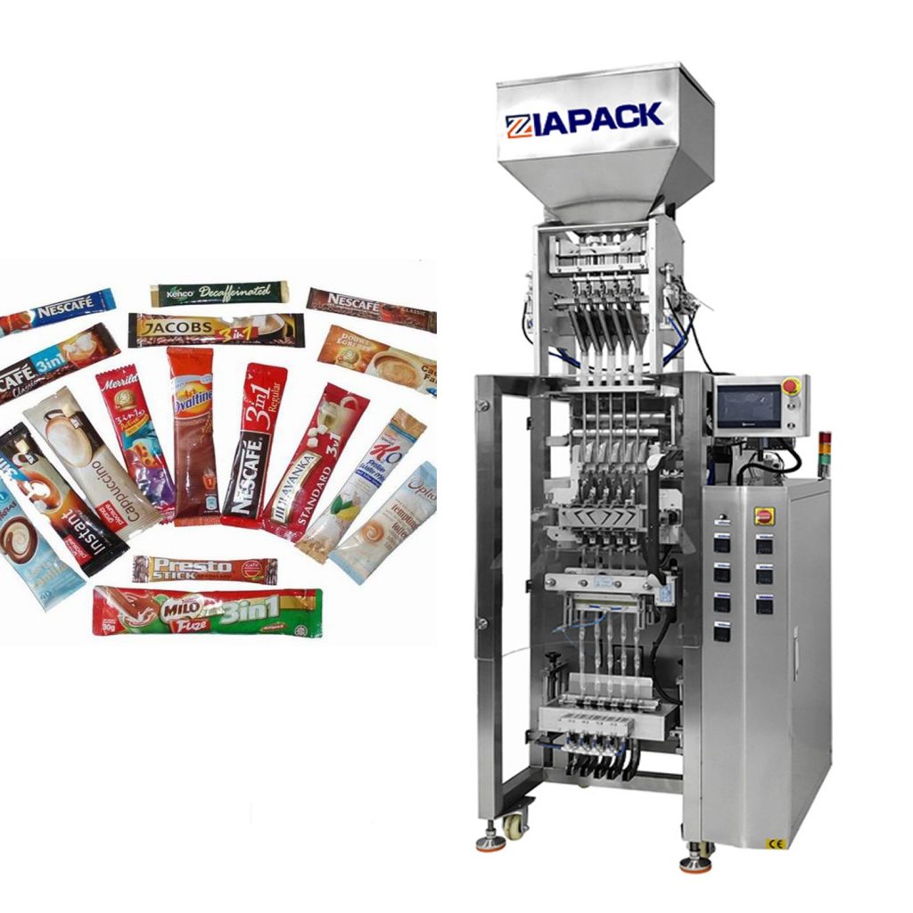Tämä on monikaistainen tikkupakkaus pussien pakkauskone, soveltuu pakkausjauhemateriaaleille, kuten maitojauhe, mehujauhe, kahvijauhe, suklaajauhe, viljajauhe, vihreä teejauhe, lääkejauhe, terveellinen jauhe jne. apteekki-, elintarvike- ja maatalouskemikaaliteollisuudessa.