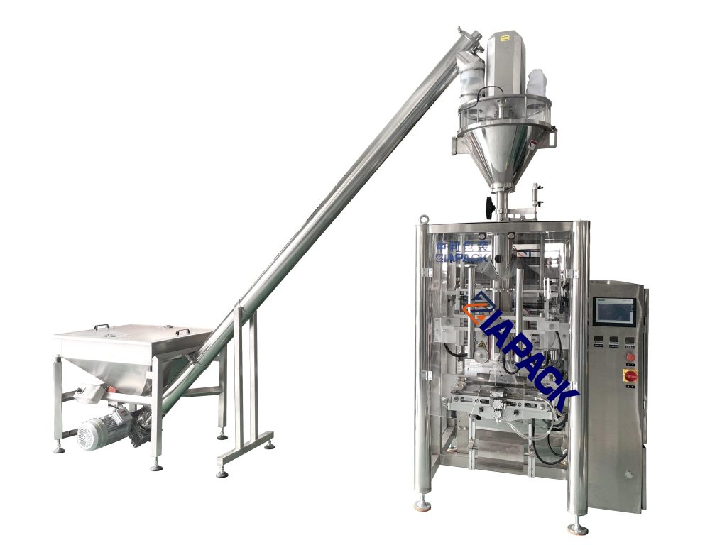 Tämä koneyksikkö sisältää yhden sarjan ZL520 pystysuoran pussin muodostavan täyttösaumauskoneen ja yhden sarjan ZL2000 kierukkamittauskoneen. Koko koneyksikkö voi saavuttaa automaattisen pussinvalmistuksen, tuotteen punnituksen, tuotteen täyttöpakkauksen ja päivämääräkoodauksen. Käytetään laajasti vehnäjauhojen, kahvin pakkaamiseen. jauhe ja muu jauhetuote.